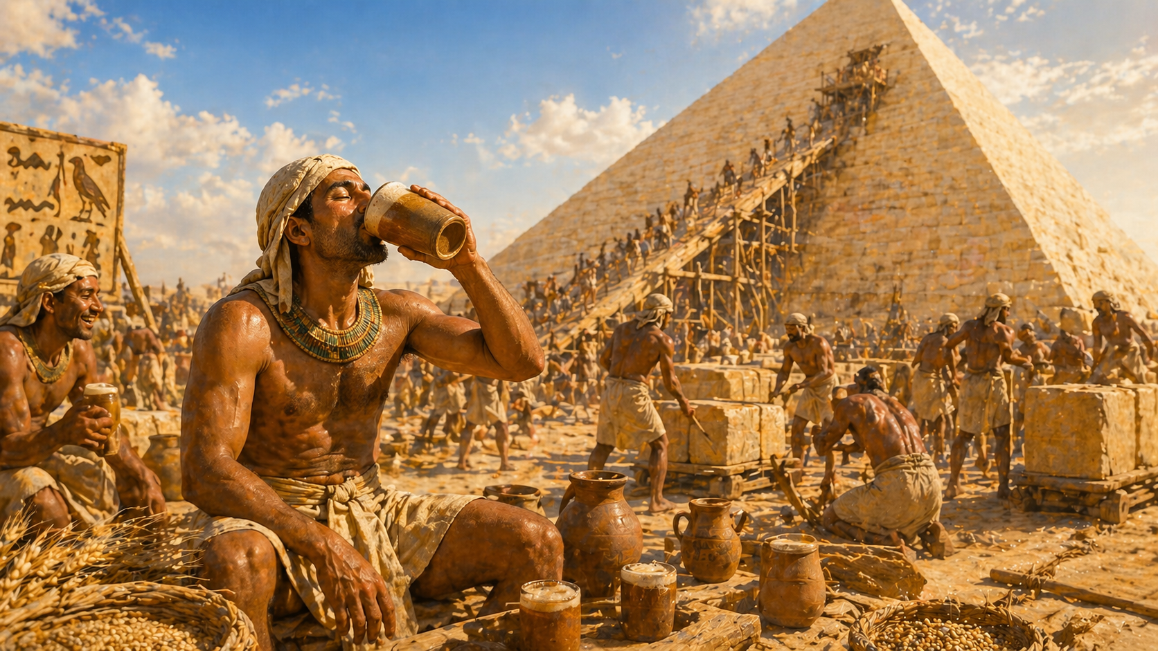 また、ビールは麦由来の糖類や酵母由来のビタミンとミネラルなどを含む栄養価の高い飲料であったため、ピラミッド建造の労働者に報酬として配給されていたそうです。
