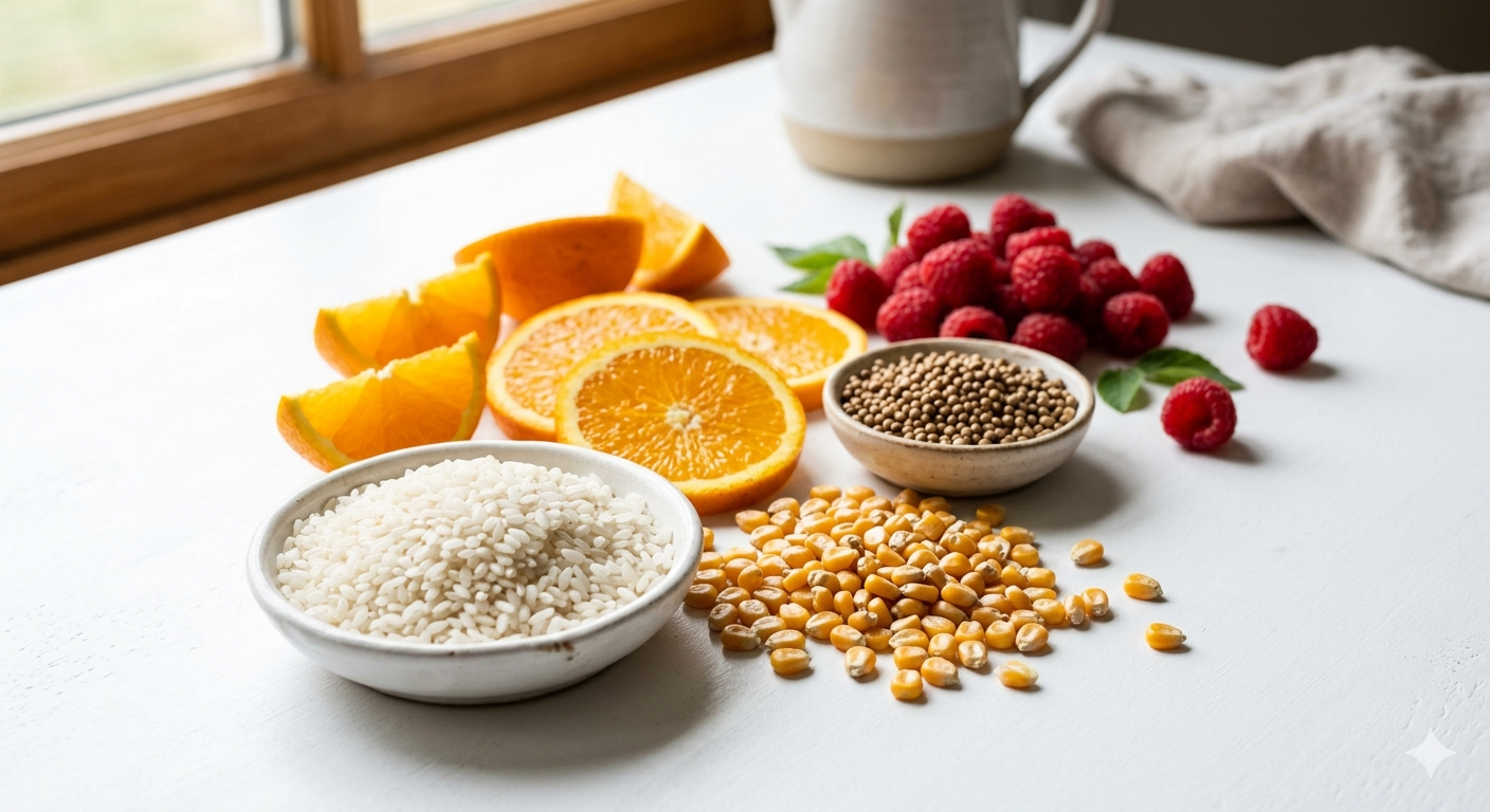 副原料には例えばお米・とうもろこし・糖類・果実・香辛料などがあり、これらは発酵の助成や品質の調整、香りづけや味つけを目的に使用されます。